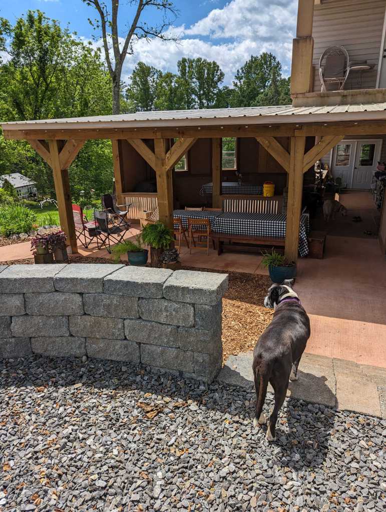 George and Garion live at Nathan and Cynthia’s farm nearby, and visit frequently. George was a frequent companion to Michele’s mom Neva, and Garion always follow’s Nathan in the fields, when he’s not in the water.